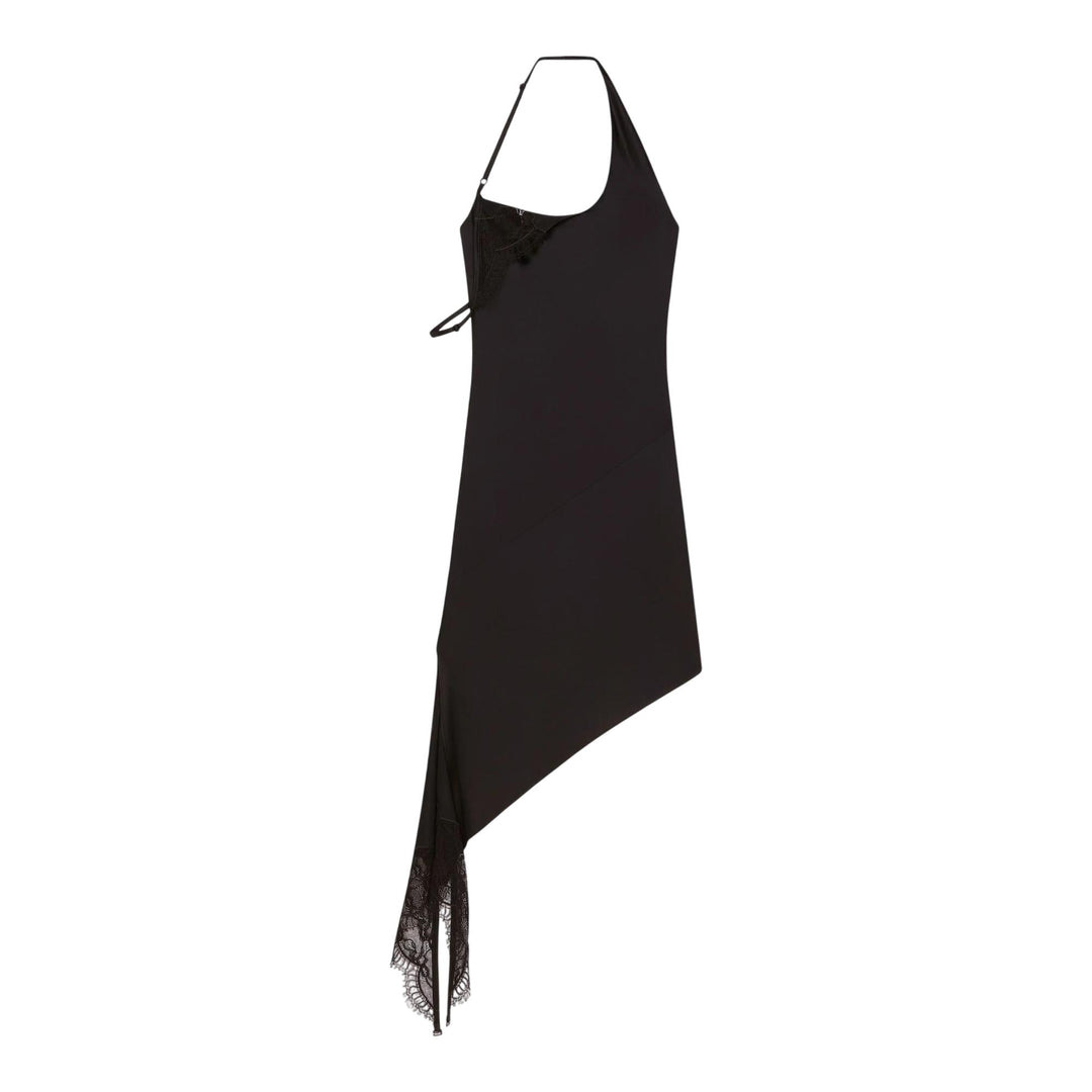 600073074BLK036 / PF25-325CRO667VI0073/00/9999 - One-shoulder asymmetrical design - Lace trim detailing - Asymmetrical hemline - Side lace-up detail - Fitted silhouette - Premium satin construction The Courreges Undressed Lace Satin Dress delivers modern elegance with architectural asymmetry and luxurious textures. Crafted from premium black satin with delicate lace trim detailing, featuring a sophisticated one-shoulder silhouette with asymmetrical hemline. The contrast of smooth satin and intricate lace creates a striking statement piece that embodies the brand's avant-garde aesthetic.
