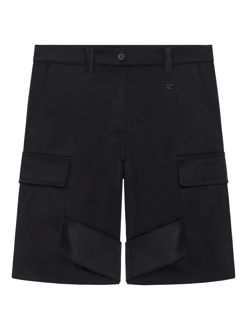 600079355BLK034 / 126CSH073TA0007/00/9999 - Button and zip fly closure - Multiple cargo pockets - Tactical chaps overlay design - Smooth satin construction - High-waisted fit - Elasticated back waistband Courreges Utility Chaps Satin Shorts deliver modern technical functionality with avant-garde design innovation. Crafted from smooth satin fabric in deep black, featuring tactical-inspired chaps construction and multiple utility pockets. The architectural silhouette and signature Courreges futuristic aesthetic create a bold statement piece for contemporary wardrobes.