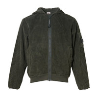 600074611NVY00S / 19CMSS217A/110472G/978 - Full zip front closure - Adjustable drawstring hood - Signature C.P. Company lens detail on sleeve - Ribbed cuffs and hem - Heavyweight corduroy construction - Regular fit - Front zip pockets C.P. Company Corduroy 350 Full Zip Hoodie delivers premium Italian craftsmanship with distinctive textural appeal and urban functionality. Crafted from heavyweight corduroy fabric in military olive green, featuring the brand's signature lens detail and technical construction. The full zip closure and structured fit create a contemporary silhouette with C.P. Company's iconic research-driven aesthetic.