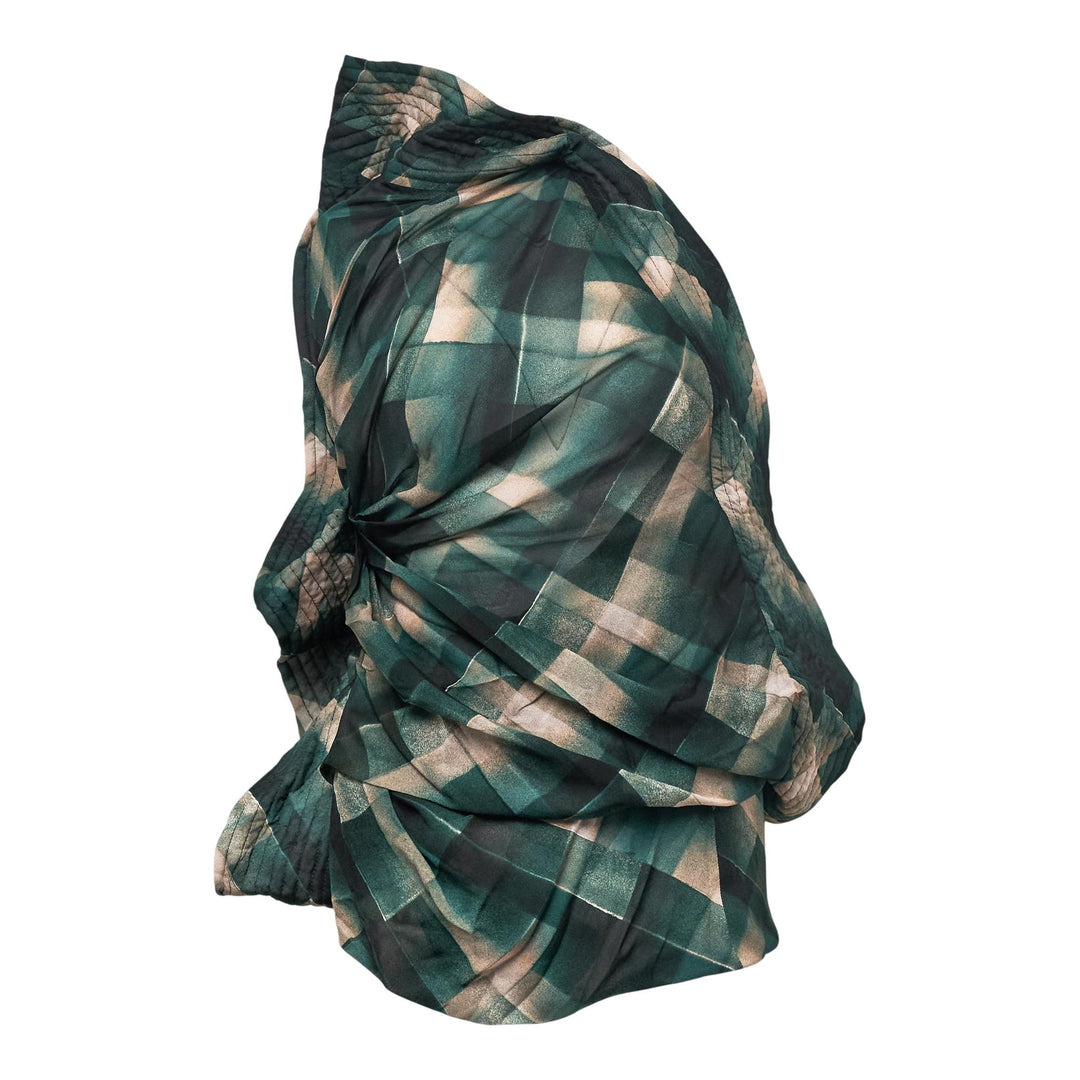 600071661GRN036 / CODOLLA/2108/605 - Open back design with twisted detail - Abstract geometric print - Draped silhouette - Luxury woven construction - Relaxed fit - Short sleeves Dries Van Noten Bare Back Top delivers avant-garde sophistication with an open-back silhouette that makes a bold statement. Crafted from luxurious woven fabric featuring an abstract geometric print in rich emerald and earth tones, showcasing the designer's signature artistic approach. The draped construction and twisted detailing create an effortlessly elegant piece that embodies contemporary Belgian craftsmanship.