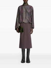 300049898BUR-36 / A5252-010772/2127/358 - Geometric medallion print throughout - Round neckline - Long balloon sleeves - Relaxed, oversized fit - Lightweight silk blend construction - Back zip closure - Gathered sleeve cuffs Dries Van Noten Capo Shirt delivers avant-garde Belgian design with sophisticated pattern work and contemporary silhouette. Crafted from lightweight silk blend fabric featuring an intricate geometric medallion print in rich burgundy and teal tones. The relaxed fit and balloon sleeves create a modern interpretation of classic shirting with the brand's signature artistic flair.