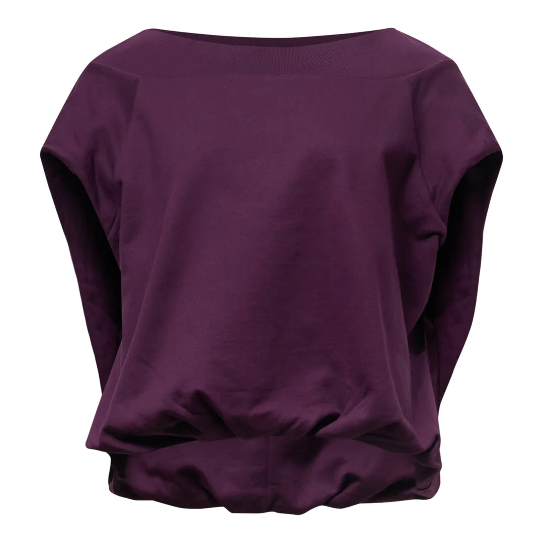 600078599PUR0XS / HAMELS/3611/357 - Cocoon-shaped silhouette - Raglan sleeve construction - Ribbed crew neckline - Dropped shoulder seams - Cotton blend fleece construction - Oversized relaxed fit - Gathered hem detail The Dries Van Noten Cocoon Shape Raglan Sweatshirt delivers architectural silhouette with contemporary comfort and avant-garde design. Crafted from premium cotton blend fleece in deep burgundy, featuring the signature cocoon-shaped draping that creates a relaxed yet structured appearance. The raglan sleeve construction and oversized fit embody the brand's innovative approach to modern luxury streetwear.