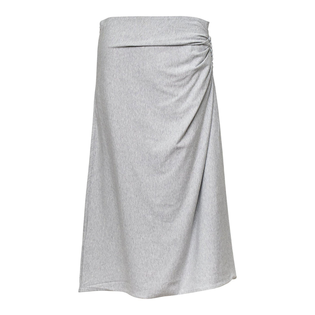 600069908GRY0XS / HEVIRA/2603/813 - Asymmetrical side draping detail - High waistband - A-line silhouette - Midi length - Premium jersey construction - Comfortable stretch fit - Unlined design Dries Van Noten Draped A-Line Skirt delivers contemporary elegance with sophisticated asymmetrical draping and fluid movement. Crafted from premium jersey fabric in versatile grey melange, featuring the brand's signature architectural approach to feminine silhouettes. The side-gathered construction and midi length create a refined statement piece that transitions effortlessly from day to evening.
