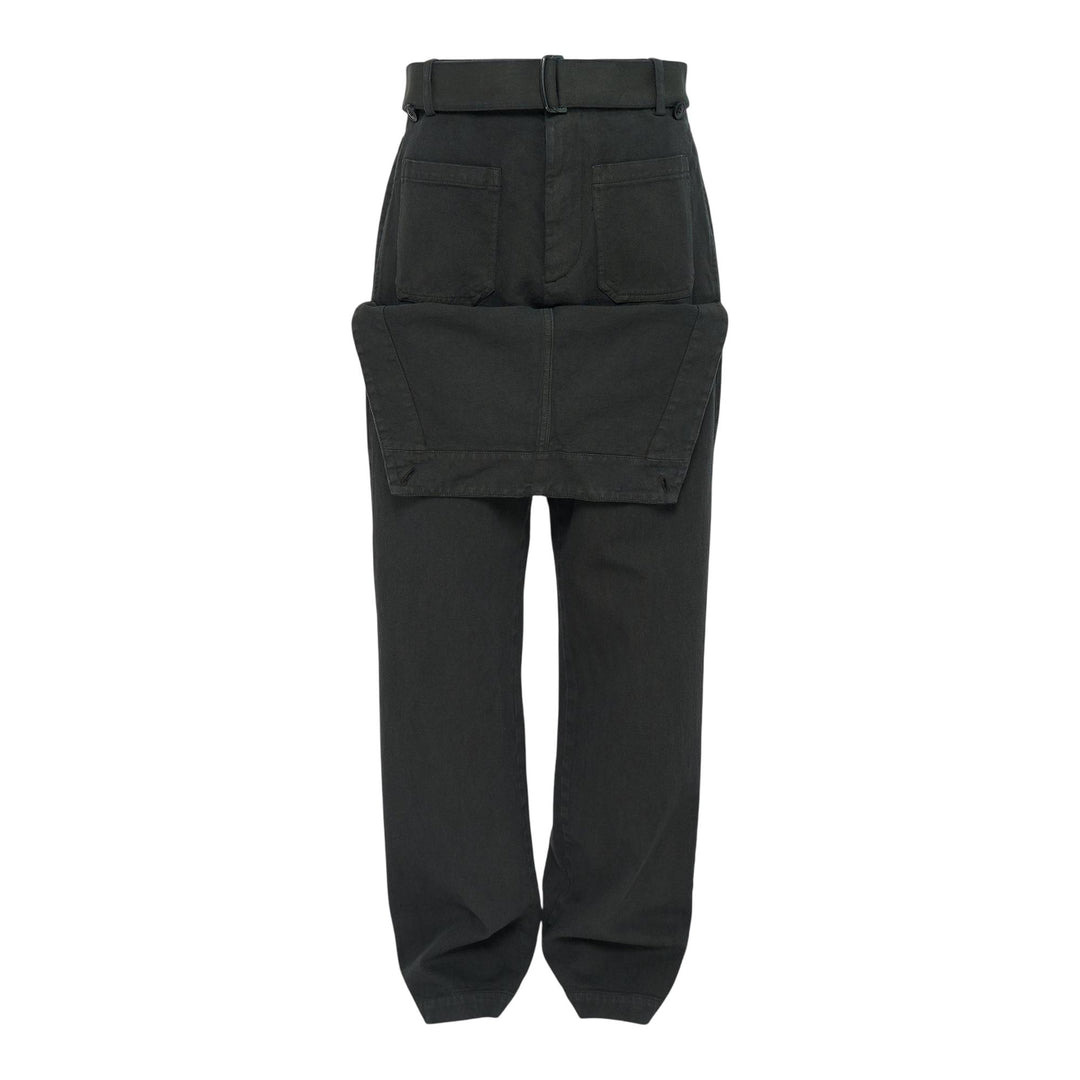 600071616CHA046 / PENNINE GD/2043/803 - Compact twill cotton construction - Overdye treatment finish - Detachable skirt overlay design - Elasticated waistband with belt - Multiple cargo pockets - Relaxed straight-leg fit - Rolled hem detailing Dries Van Noten Overdye Compact Twill Cotton Pants deliver contemporary tailoring with avant-garde design innovation. Crafted from premium compact twill cotton with an overdye treatment, featuring an unconventional layered construction with detachable skirt overlay. The signature deconstructed aesthetic and architectural silhouette exemplify the brand's experimental approach to modern menswear.