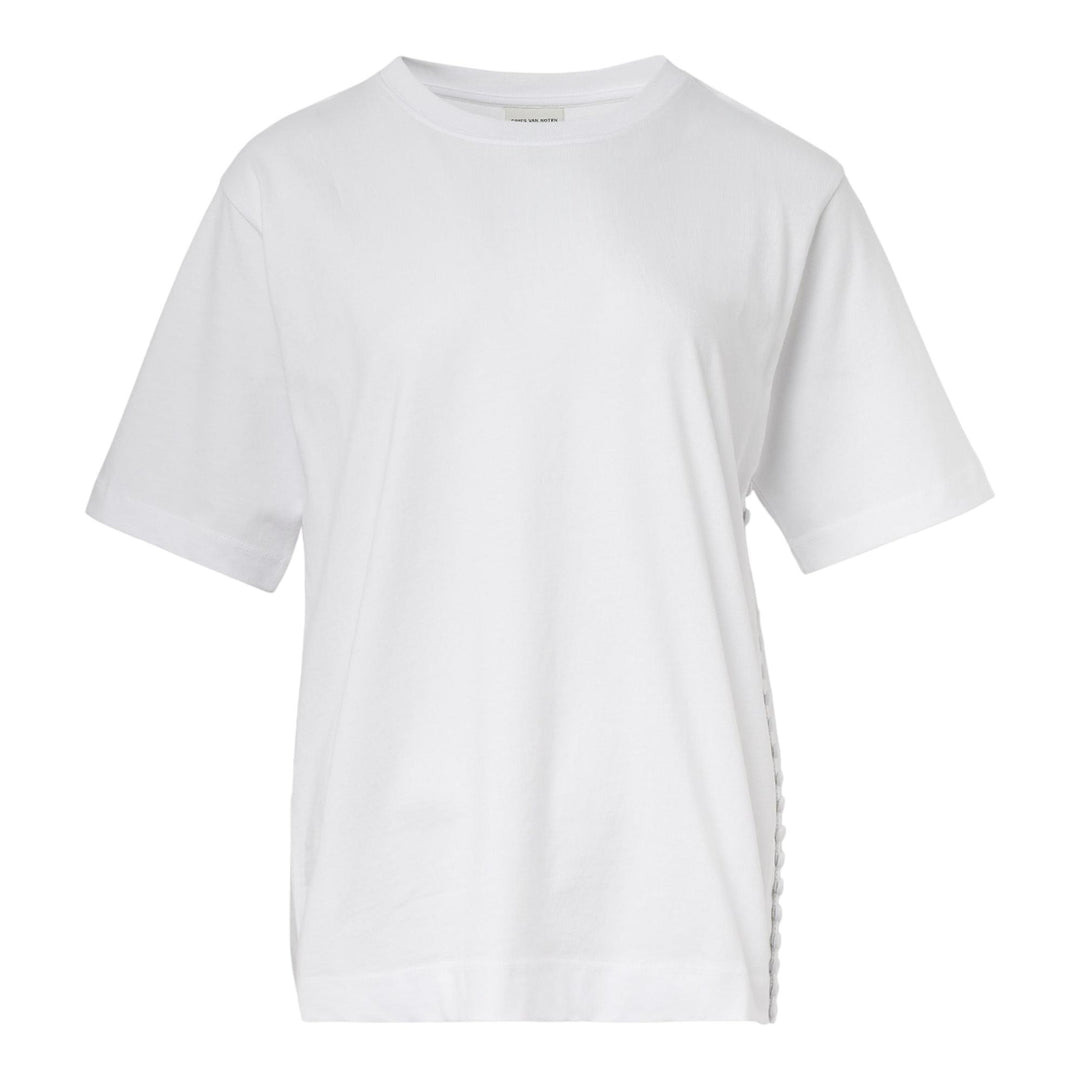600071673WHT00S / HEYDU BIS/2603/001 - Regular fit silhouette - Short sleeves - Crew neckline - Premium cotton jersey construction - Minimalist design - Belgian craftsmanship The Dries Van Noten Regular Fit Short Sleeve T-Shirt delivers contemporary comfort with Belgian design excellence. Crafted from premium cotton jersey in clean white, featuring the brand's signature relaxed tailoring and minimalist aesthetic. The comfortable regular fit and quality construction create a versatile foundation piece for modern wardrobes.