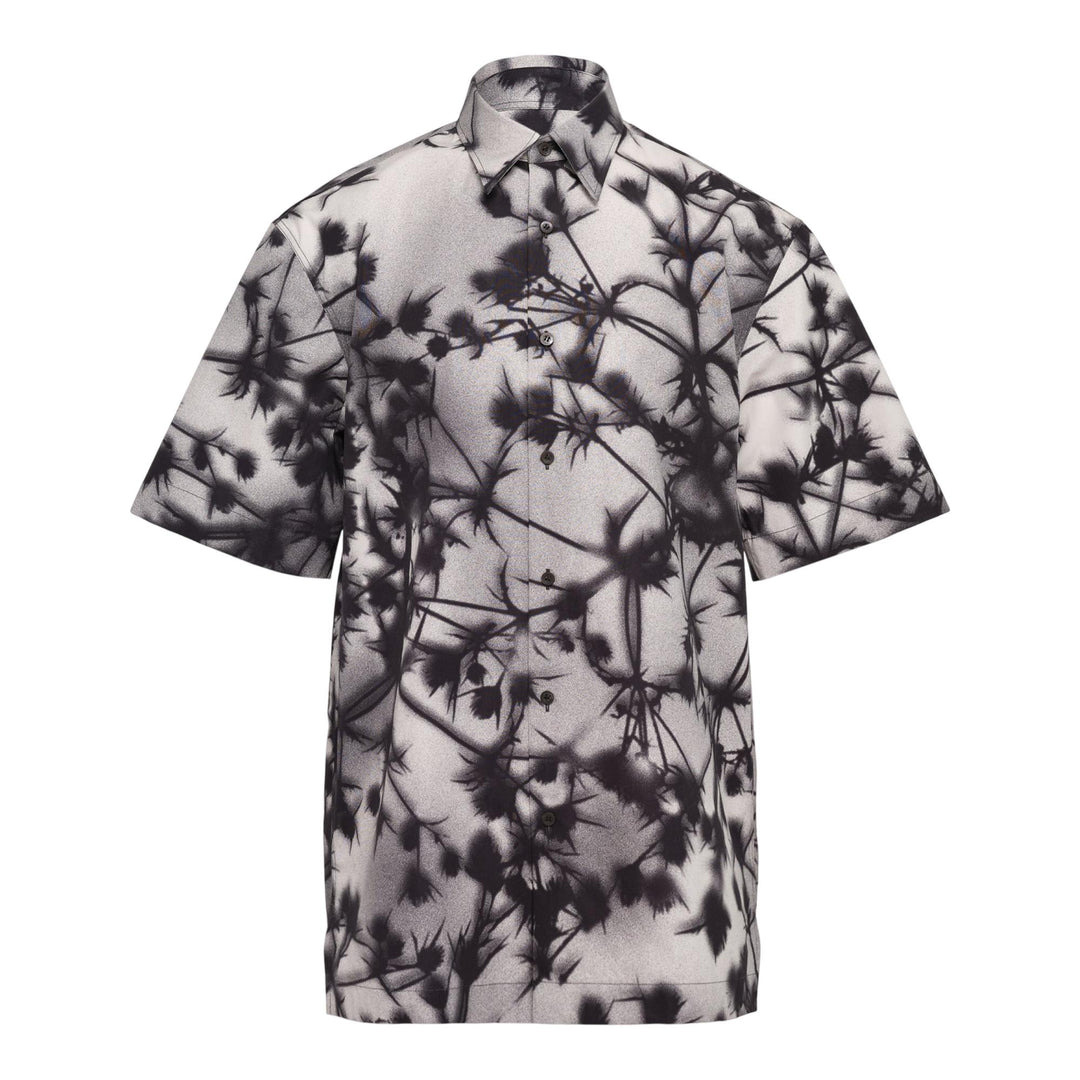 600071591BLK00S / CASSIDYE/2030/900 - Classic point collar - Front button closure - Short sleeves - Loose, oversized fit - All-over botanical shadow print - Lightweight woven construction - Straight hem Dries Van Noten Short Sleeve Loose Fit Shirt delivers contemporary style with artistic botanical prints and relaxed sophistication. Crafted from lightweight woven fabric featuring dramatic black and white palm tree shadow motifs across a neutral base. The oversized silhouette and signature Van Noten tropical aesthetic create an effortlessly elevated piece for modern wardrobes.