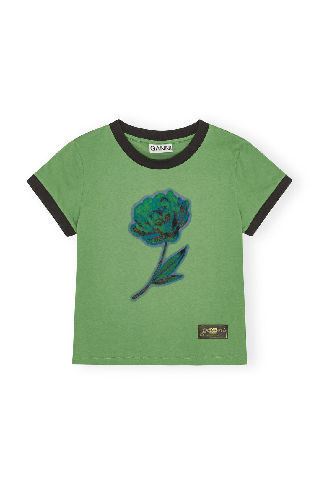 GANNI Basic Cotton Jersey Peony Cropped T-Shirt