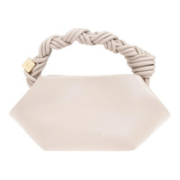 300047885NUD-NS / P5A6949/00/873 - Signature braided rope handle - Removable crossbody strap - Magnetic closure - Interior slip pocket - Smooth leather construction - Mini structured silhouette - Gold-tone hardware accents GANNI Bou Bag Mini delivers contemporary Scandinavian design with distinctive braided handle craftsmanship and modern functionality. Crafted from premium smooth leather in soft beige tone, featuring the signature twisted rope handle and structured silhouette. The compact mini size and crossbody strap option make it perfect for day-to-evening versatility.
