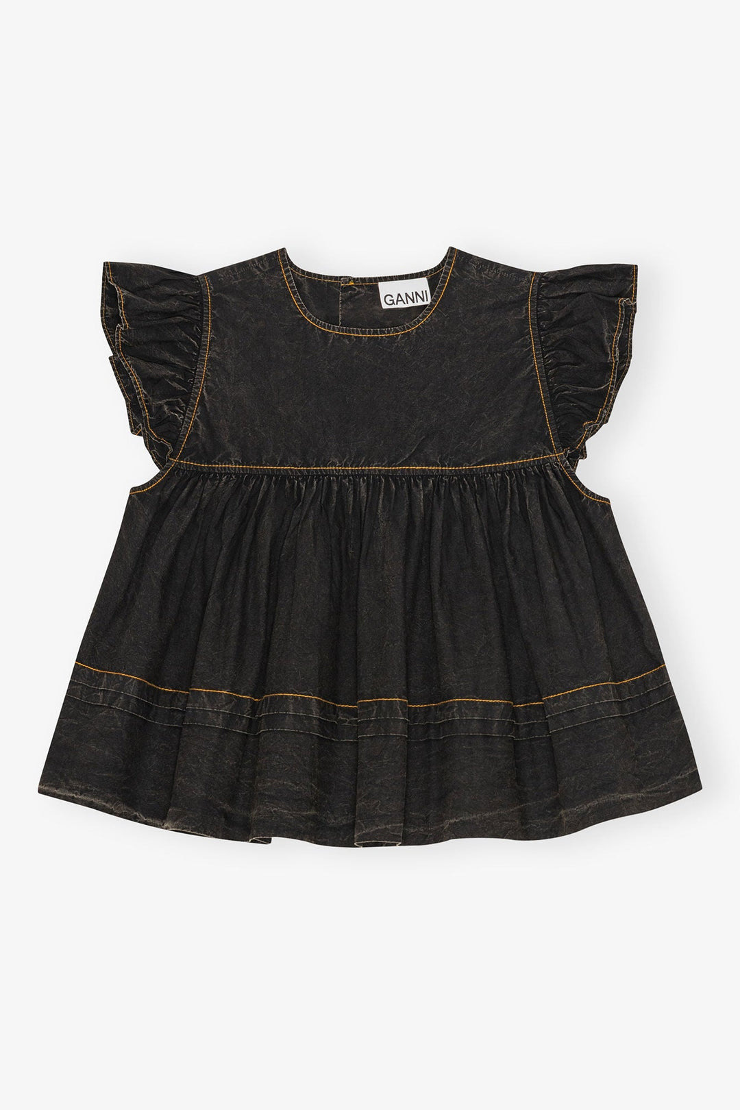 GANNI Garment Dyed Cotton Frill Sleeve Top