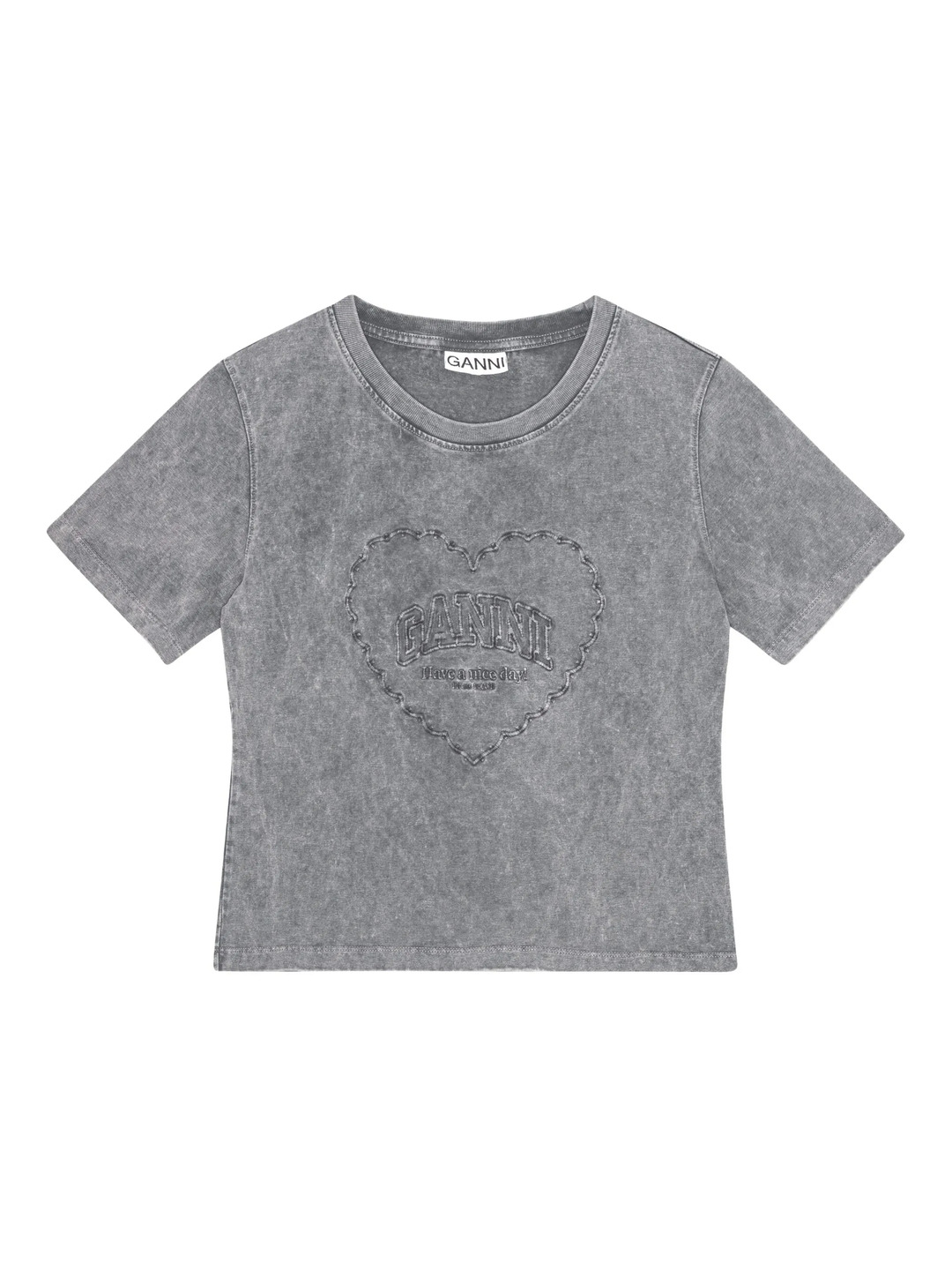GANNI Heavy Cotton Jersey Heart Cropped T-Shirt