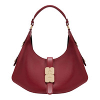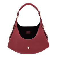 600075405RED0OS / A7077/00/818 - Smooth leather construction - Signature gold-tone four-leaf closure - Adjustable shoulder strap - Curved hobo silhouette - Interior compartment - Side buckle details GANNI Kat Small Bag delivers Scandinavian sophistication with contemporary hobo silhouette and signature hardware detailing. Crafted from smooth burgundy leather with gold-tone metal closure featuring the brand's iconic four-leaf motif. The curved crescent shape and adjustable shoulder strap create an effortlessly chic accessory for modern wardrobes.