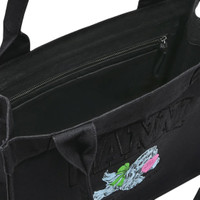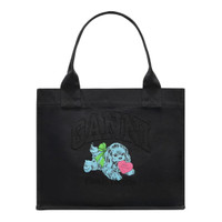 600075407CHA0OS / A7158/00/252 - Embroidered dog graphic with colorful details - Dual carry handles - Spacious main compartment - Durable canvas construction - GANNI logo embroidery - Structured base GANNI Large Easy Shopper Pocket Dog delivers playful Scandinavian style with practical everyday functionality. Crafted from durable black canvas featuring a charming embroidered dog graphic with green bow and pink heart detail. The spacious tote design and sturdy construction make it perfect for daily essentials with signature GANNI whimsy.