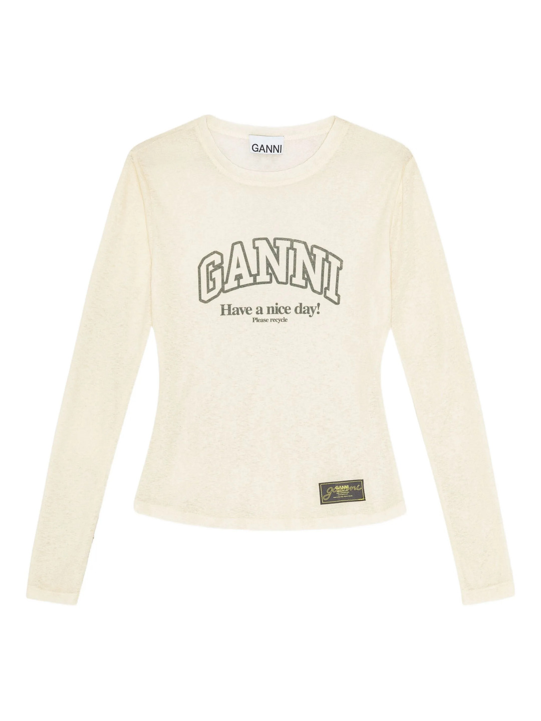 GANNI Printed Marl Mesh Long Sleeve Top