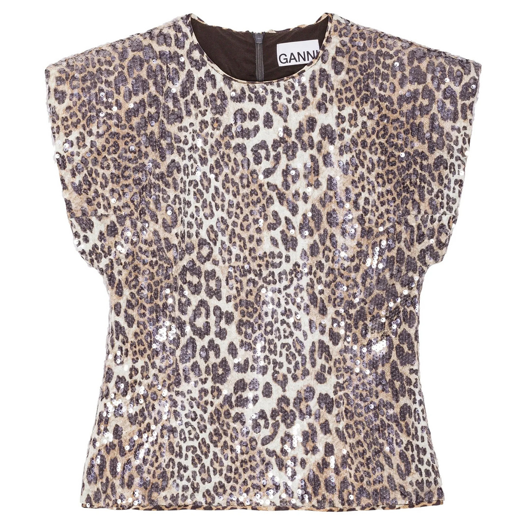 LEOPARD PRINTED STRETCH SEQUINS BLOUSE