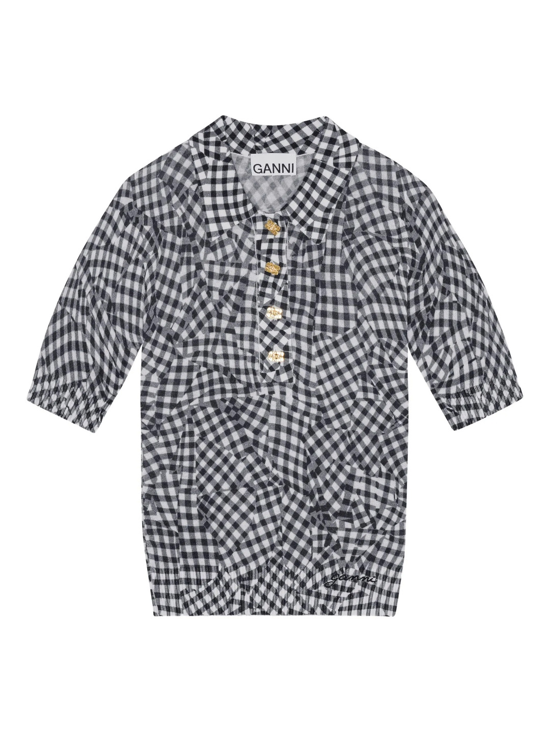 BLACK SHEER COTTON PRINTED POLO SHIRT