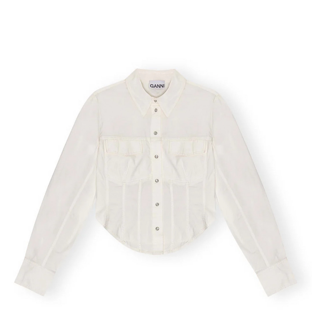 GANNI Washed Stretch Cotton Corset Shirt