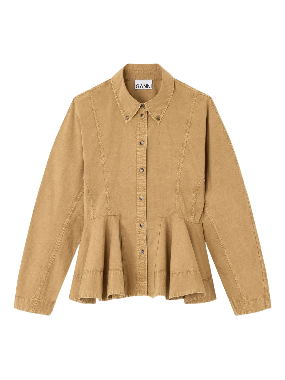 GANNI Washed Stretch Cotton Peplum Shirt