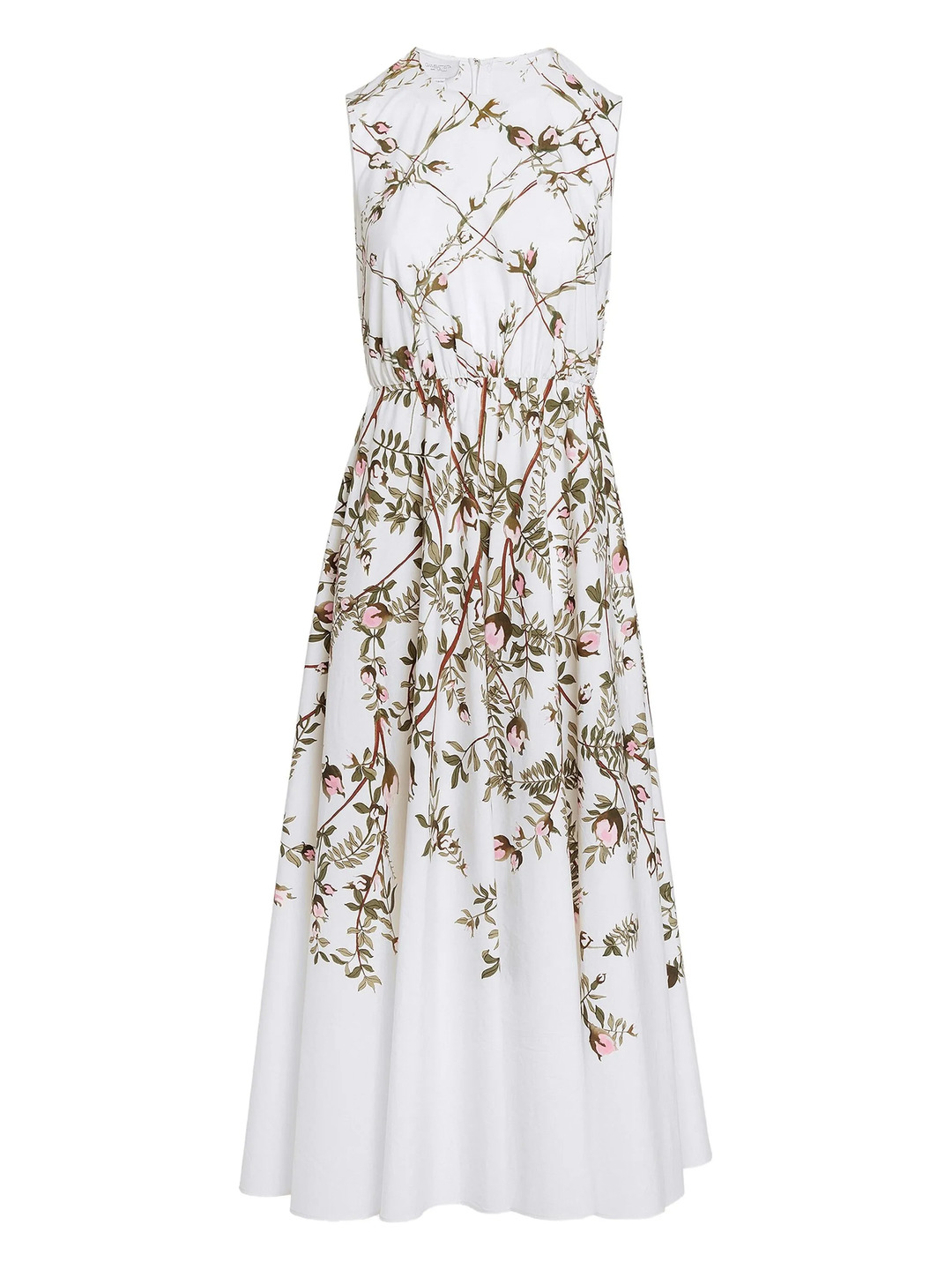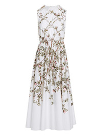 Pleated floral-print cotton-poplin midi dress White