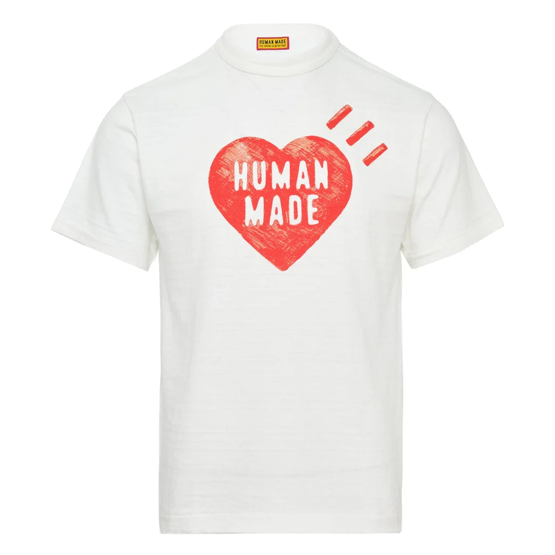 Human Made Graphic T-Shirt delivers premium Japanese streetwear with distinctive heart logo design and authentic craftsmanship. Made from soft cotton jersey in clean white, featuring the brand's signature hand-drawn heart graphic with radiating lines in vibrant red. The comfortable fit and premium construction create a standout piece that embodies Human Made's playful yet sophisticated aesthetic.