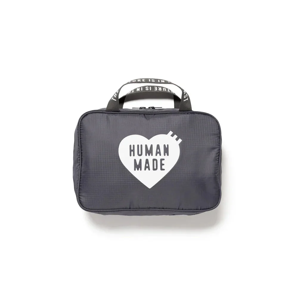 600075245GRY0OS / HM30GD032/00/GRAY/NOV - Durable ripstop nylon construction - Signature Human Made heart logo - Top zip closure - Reinforced carry handles - Multiple internal compartments - Compact travel-friendly size Human Made Organizer Pouch delivers functional streetwear design with Japanese craftsmanship and thoughtful organization. Constructed from durable ripstop nylon in charcoal gray, featuring the brand's signature heart logo and reinforced construction throughout. The compact design and multiple compartments make it perfect for travel and everyday organization.