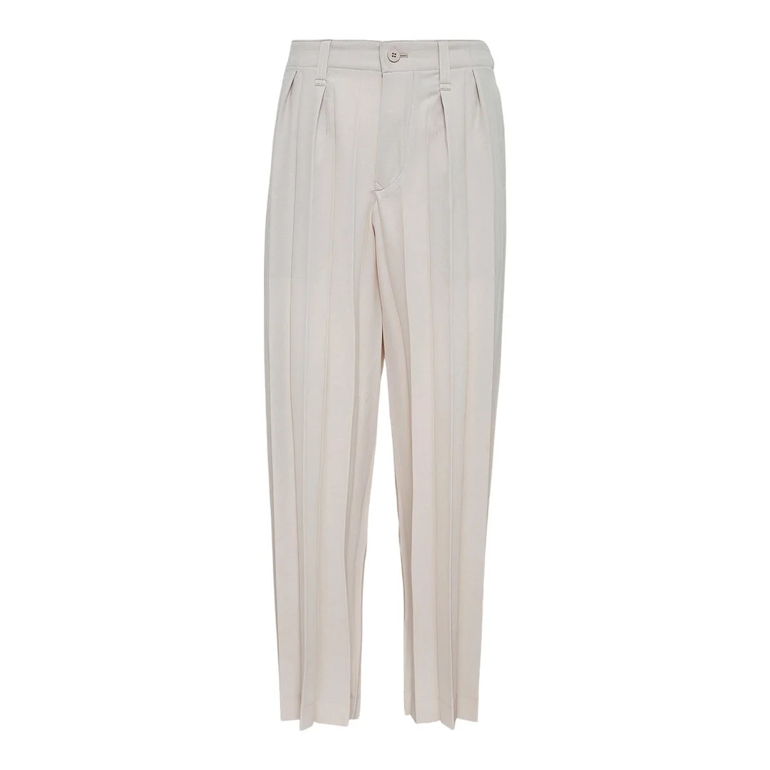 HOMME PLISSE ISSEY MIYAKE Edge Ensemble Pants These straight-leg beige pleated trousers have belt loops, a button-fly and side pockets. EDGE ENSEMBLE offers summer suiting styles. The wide accordion pleats and semi-gloss finish lend this series a formal air.