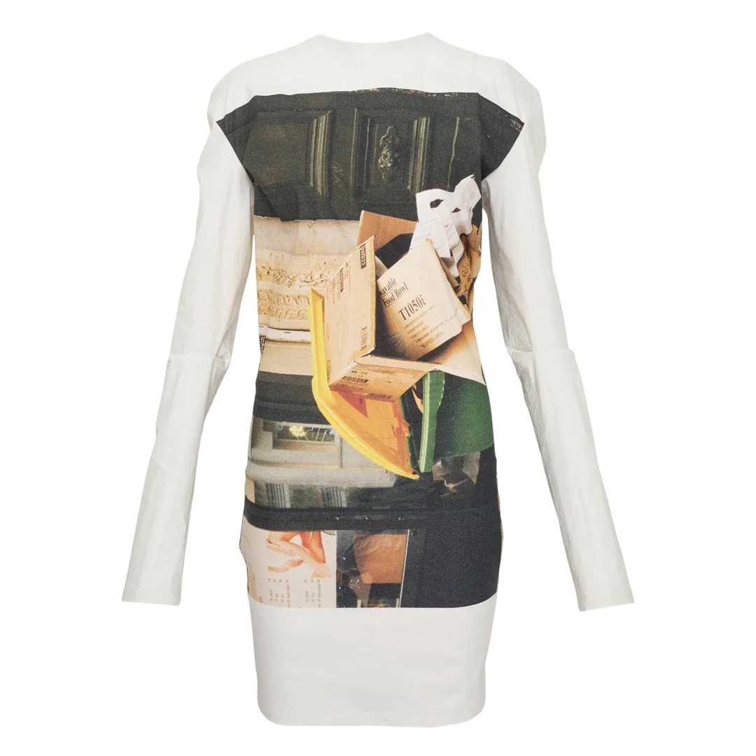 600069584OWT002 / IM58FJ024/00/02/NOV - Long sleeves with fitted cuffs - Crew neckline - Photographic collage print - Premium woven fabric construction - Slim fit silhouette - Pull-over style ISSEY MIYAKE Street View Woven Top delivers contemporary artistic expression through innovative textile design and architectural construction. Crafted from premium woven fabric featuring a striking photographic collage print of urban books and cityscapes in warm earth tones. The long-sleeved silhouette showcases ISSEY MIYAKE's signature approach to wearable art and modern functionality.