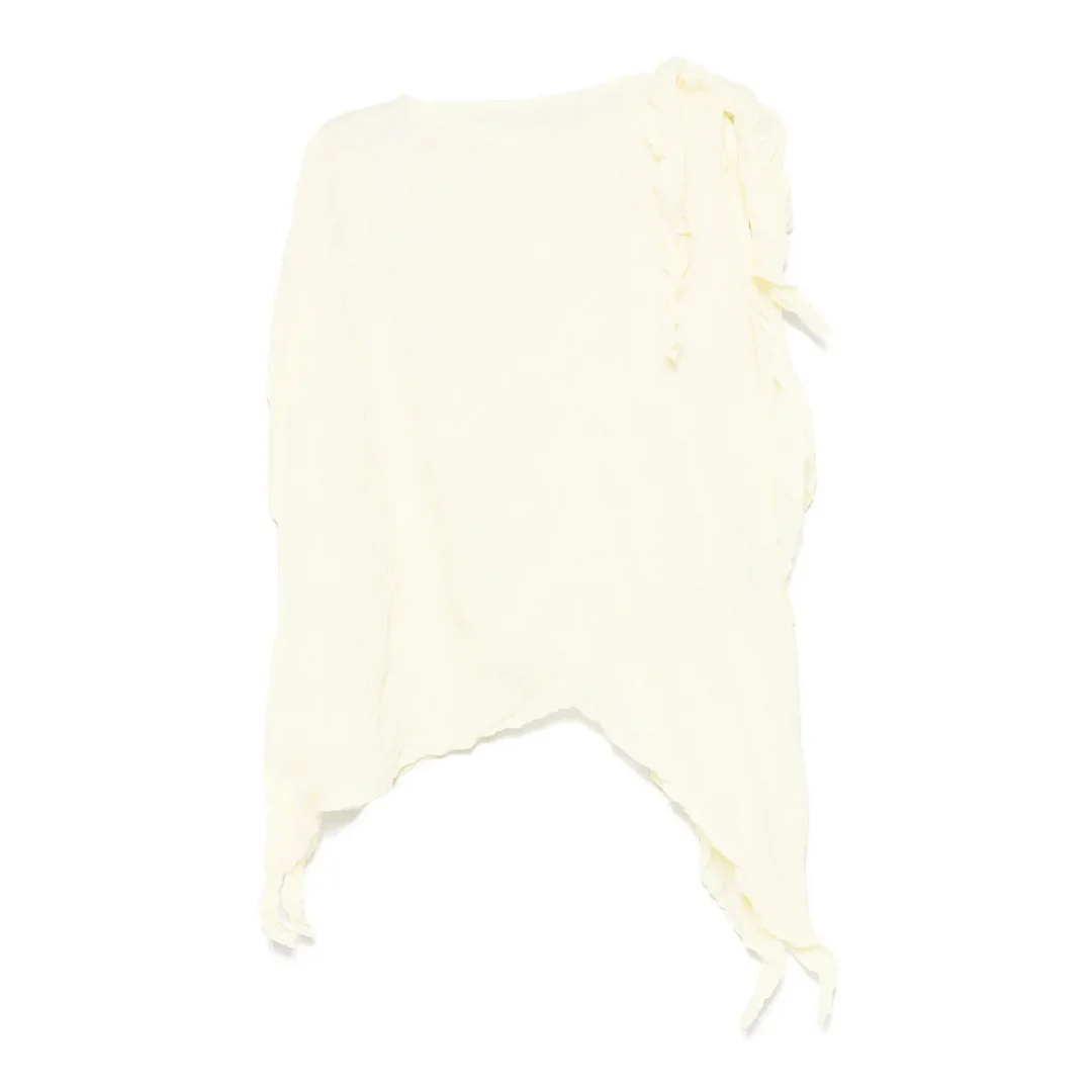 600061879YEL002 / IM56FJ674/00/50/APR - Signature ISSEY MIYAKE pleating technology - Wrinkled and twisted texture design - Three-dimensional sculptural construction - Shape-retaining polyester fabric - Machine washable and packable - Relaxed fit with structured silhouette The ISSEY MIYAKE Wrinkled And Twisted Pleated Top delivers innovative textile design with architectural pleating technology. Crafted from the brand's signature polyester pleating in cream white, featuring sculptural wrinkled texture and twisted construction details. The revolutionary pleating technique creates a three-dimensional silhouette that maintains its shape while offering comfortable movement.