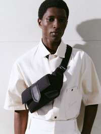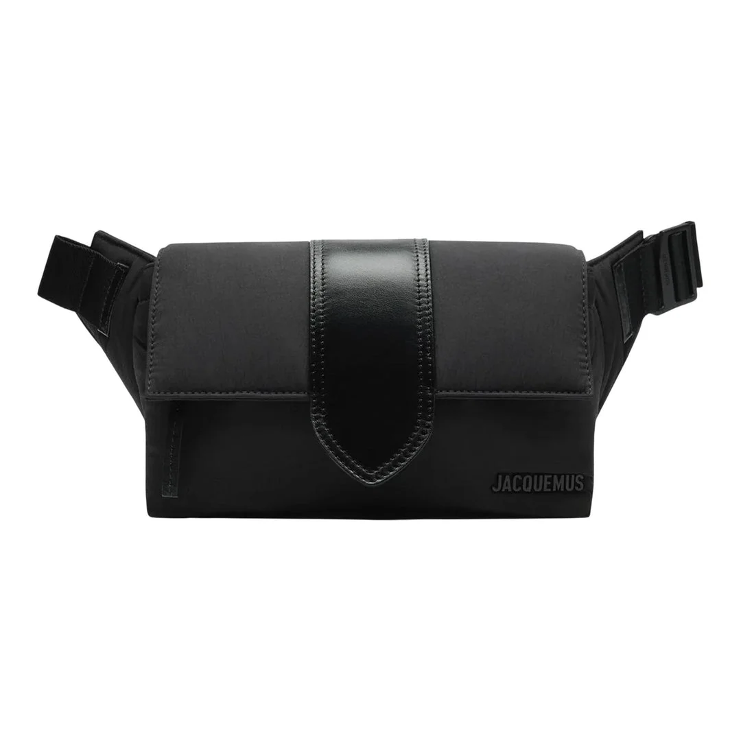 300045272BLK-NS / S524H246BA379-3174/00/990 - Adjustable black webbing strap with buckle closure - Curved flap design with magnetic closure - Contrast topstitching details - Single main compartment - Premium black leather construction - Can be worn as belt bag or crossbody The Jacquemus La Banane Bambino delivers iconic French luxury in a compact belt bag silhouette perfect for modern minimalists. Crafted from premium black leather with signature curved flap design and contrast stitching details throughout. The adjustable webbing strap and sculptural silhouette showcase Jacquemus' distinctive architectural approach to accessories.