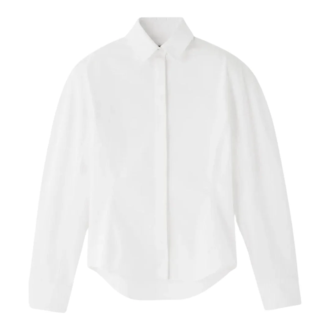 600074370WHT036 / AW25-SHW00539AW00648/00/100 - Classic point collar - Full button front closure - Long sleeves with barrel cuffs - Curved hem design - Premium cotton poplin construction - Relaxed fit The Jacquemus La Chemise Ovalo delivers French minimalist sophistication with architectural precision and contemporary elegance. Crafted from crisp cotton poplin in classic white, featuring the brand's signature clean lines and modern proportions. The structured silhouette and refined tailoring create an effortlessly chic statement for modern wardrobes.