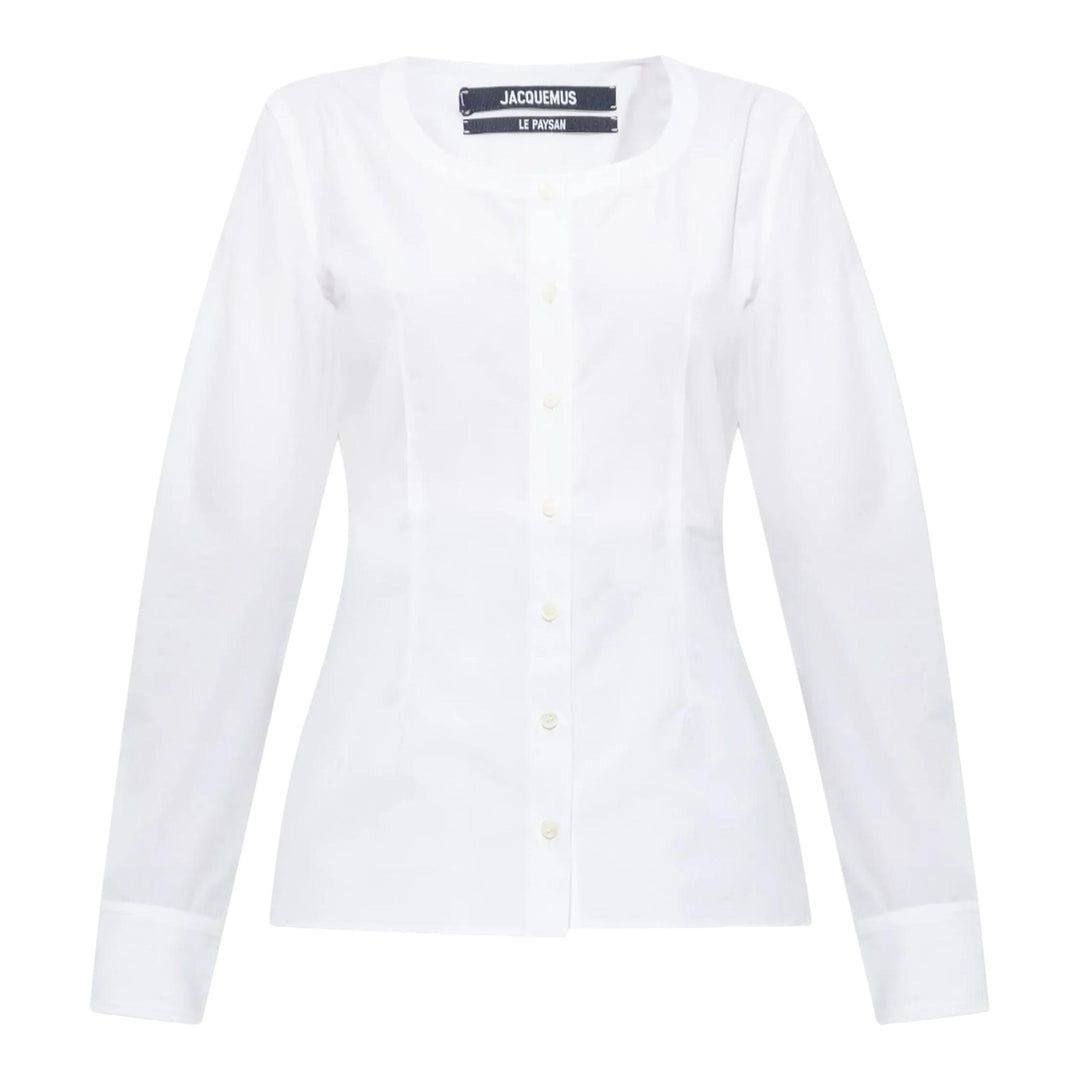 300049508WHT-34 / A525HSHW00547AW00351/00/100 - Classic point collar - Long sleeves with button cuffs - Concealed button placket - Tailored fit through body - Premium cotton poplin construction - Clean hem finish The Jacquemus La Chemise Tore delivers contemporary French sophistication with minimalist tailoring and architectural proportions. Crafted from premium crisp cotton poplin in pure white, featuring the brand's signature clean lines and modern silhouette. The structured construction and subtle design details create an effortlessly chic foundation for any wardrobe.