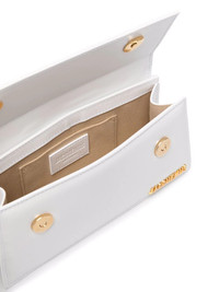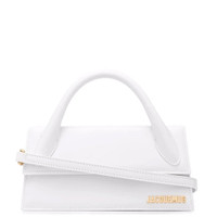 JACQUEMUS Le Chiquito long Debuted in AW19, the Le Chiquito bag has become an iconic JACQUEMUS symbol. Seen here in an elongated version, the silhouette is presented in a bright white hue and accented with a gold-tone lettering logo. - 100% Leather - Depth 5 cm / Handle 7 cm / Height 10 cm / Straps 55 cm / Length 20 cm - White - Reinforced handle - Magnetic flap closure - Adjustable, removable strap - Interior pocket - Gold metal logo and hardware - Fully lined - Painted edges - Made in Italy
