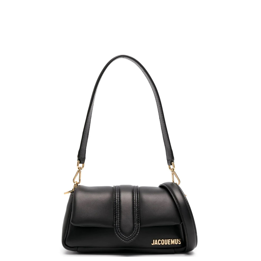 JACQUEMUS Le Petit Bambimou A padded iteration of one of the brand's signature styles, this Le Petit Bambimou demonstrates Jacquemus' penchant for playful accessories. It ?s crafted from smooth black leather to a boxy silhouette and adorned with polished gold-tone logo hardware.
