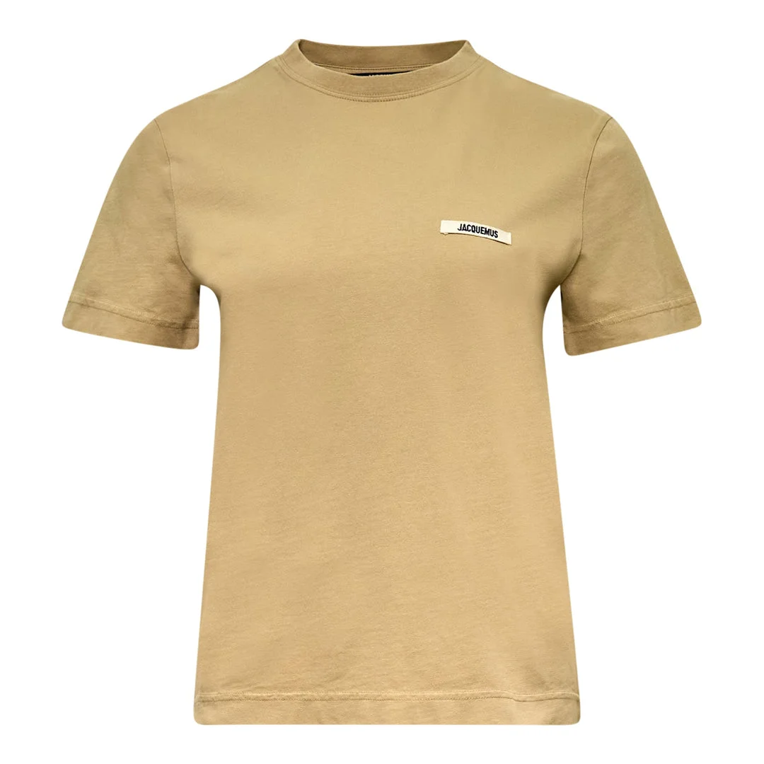600081080DBR0XS / SS26-TSW00550AJ00029/00/180 - Signature white grosgrain label detail - Round neckline - Short sleeves - Soft cotton jersey construction - Relaxed fit - Made in France The Jacquemus Le T-Shirt Gros Grain delivers French luxury minimalism with contemporary silhouette and premium construction. Crafted from soft cotton jersey in warm beige, featuring the signature white grosgrain label detail at the chest. The relaxed fit and premium hand-feel create an effortlessly chic foundation for modern wardrobes.