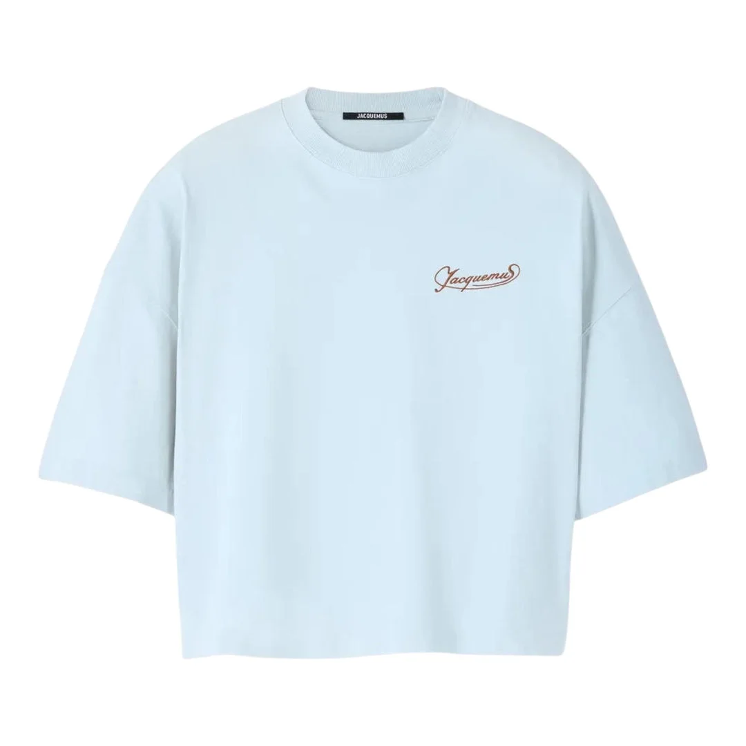 600074379WHTXXS / AW25-TSW00216AJ00045/00/3GI - Cropped length design - Embroidered script logo on chest - Short sleeves - Round neckline - Premium cotton construction - Relaxed oversized fit JACQUEMUS Le Tshirt Corto delivers French minimalism with contemporary cropped silhouette and relaxed elegance. Crafted from premium cotton in soft powder blue, featuring the signature script logo embroidered on the chest. The cropped length and oversized fit create a modern take on classic leisurewear with Provencal sophistication.
