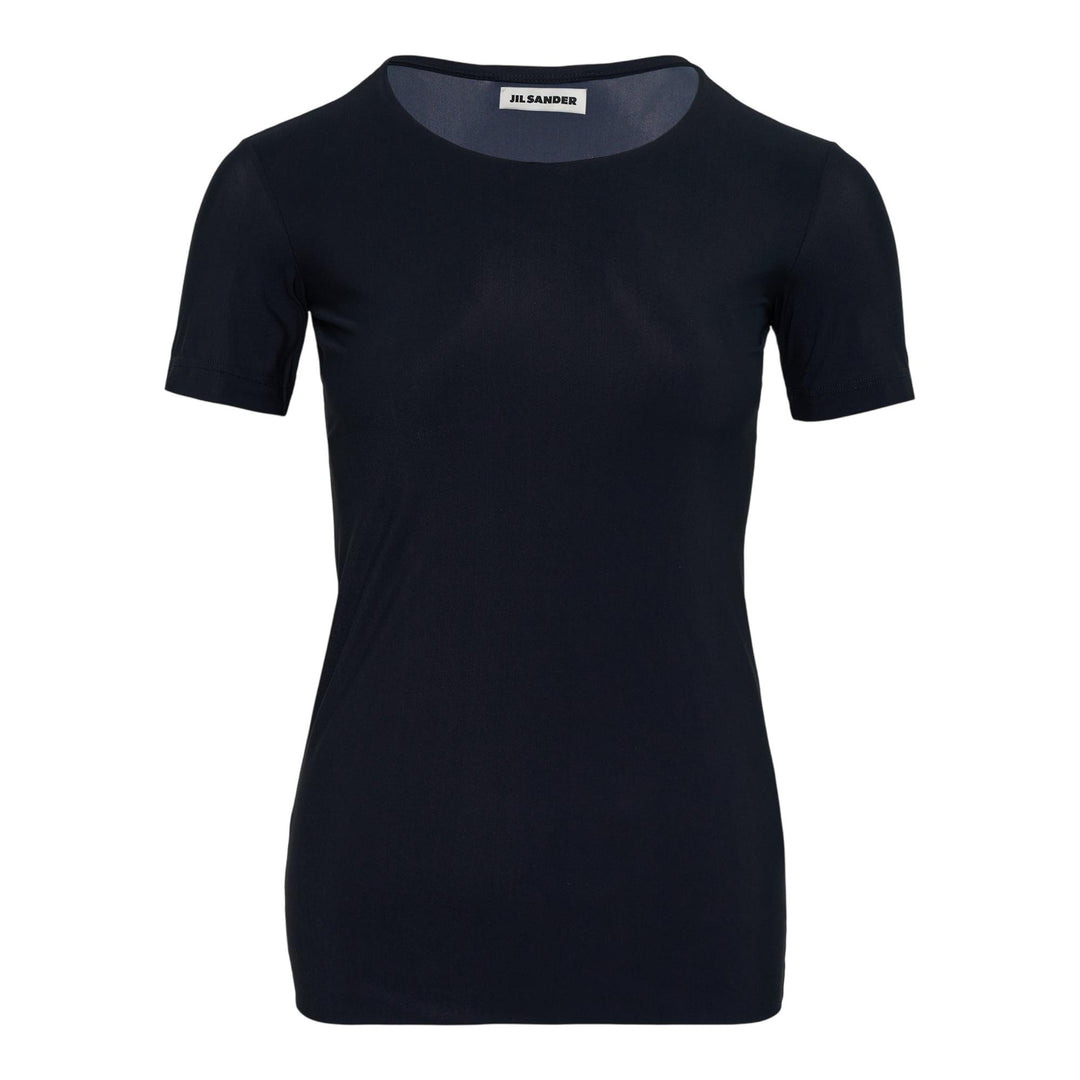 600075837BLK00S / PF25-J01GC0003/J70026/001 - Stretch cotton blend construction - Second-skin comfortable fit - Short sleeves - Crew neckline - Contrast trim detailing - Lightweight breathable fabric The Jil Sander 2nd Skin T-Shirt delivers minimalist luxury with a second-skin fit that moves seamlessly with your body. Crafted from premium stretch cotton blend in sophisticated navy, featuring the brand's signature clean aesthetic and precise construction. The lightweight fabric and contoured silhouette create an effortless foundation piece for modern wardrobes.