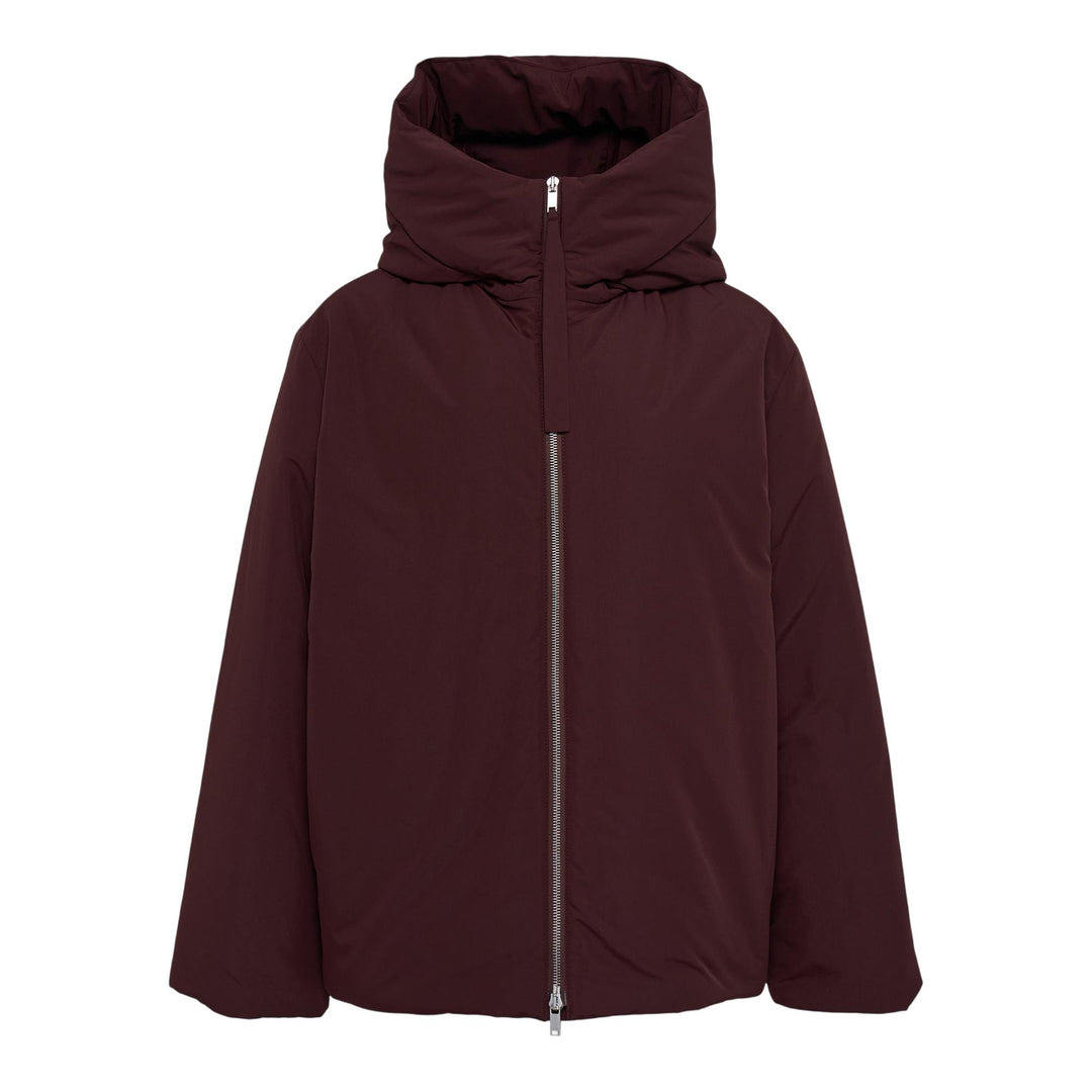 600073190DBR00S / PF25-J40AF0178/J74276/602-J+ - Premium down insulation - Full zip closure with high collar - Oversized hood with drawstring adjustment - Relaxed oversized fit - Water-resistant outer shell - Minimalist design aesthetic Jil Sander Down Jacket delivers minimalist luxury with superior insulation and contemporary design. Crafted from premium technical fabric in rich burgundy, featuring high-quality down fill for exceptional warmth-to-weight ratio. The clean architectural silhouette and signature zip closure create a sophisticated statement piece for modern wardrobes.