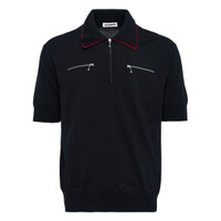 600073213BLK046 / PF25-J22GL0114/J14782/001-PRE - Fine merino wool construction - Short sleeves with ribbed cuffs - Spread collar with contrast trim - Half-zip front closure - Two chest zip pockets - Regular fit - Ribbed hem The Jil Sander Fine Merino Knit Short Sleeve Polo delivers minimalist luxury with exceptional comfort and refined craftsmanship. Crafted from premium fine merino wool in sophisticated black, featuring a structured knit construction with contrast trim detailing. The signature zip closure and streamlined silhouette embody Jil Sander's commitment to contemporary elegance.