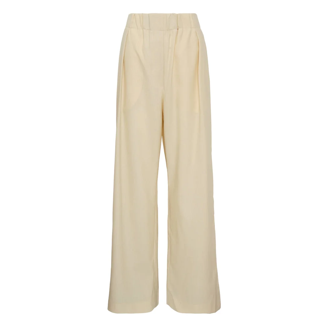 600077962BGE038 / J02KA0383/J40171/263 - Elasticated waistband - Wide leg silhouette - Side seam pockets - Fine wool construction - Relaxed fit - Full length design Jil Sander Fine Wool Trouser delivers minimalist elegance with superior tailoring and contemporary sophistication. Crafted from premium fine wool in soft cream, featuring the brand's signature clean aesthetic and impeccable construction. The relaxed silhouette and refined drape create an effortless luxury piece for modern wardrobes.
