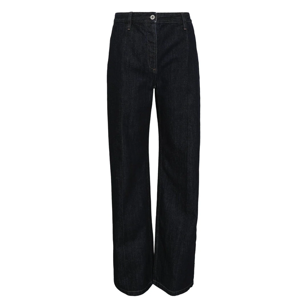 600077961DNM036 / J02KA0374/J45324/010 - High-waisted fit - Wide leg silhouette - Single button closure - Front pressed creases - Lightweight denim construction - Clean finished seams - Relaxed tailored fit The Jil Sander Light Denim Trouser delivers minimalist sophistication with contemporary tailoring and premium construction. Crafted from lightweight denim in deep indigo wash, featuring the brand's signature clean lines and architectural silhouette. The wide-leg cut and high-waist design create a modern statement piece that embodies effortless luxury.