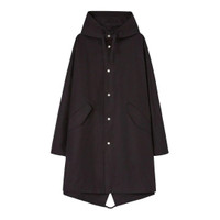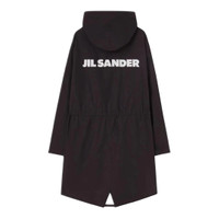 600023457BLK048 / J23AA0008/J45070/001 - Snap button front closure - Attached hood with drawstring adjustment - Two front patch pockets - Long sleeves with fitted cuffs - Extended length design - Technical fabric construction - Relaxed oversized fit - Split hem detail The Jil Sander Logo Parka delivers minimalist luxury with contemporary urban functionality and refined architectural silhouette. Crafted from premium technical fabric in sophisticated black, featuring the brand's signature clean aesthetic with subtle logo detailing. The structured design and weather-resistant construction create essential outerwear for modern wardrobes.