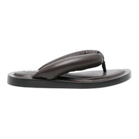 600064681DBR036 / PS25-J44WX0014/P5810/203-J+ - Premium nappa leather construction - Padded thong straps - Contoured footbed - Flat sole design - Slip-on style - Minimalist aesthetic The Jil Sander Nappa Setanil Sandal delivers minimalist luxury with premium leather craftsmanship and understated elegance. Crafted from supple nappa leather in sophisticated charcoal gray, featuring padded thong straps for all-day comfort. The clean silhouette and architectural sole design embody Jil Sander's signature refined aesthetic.
