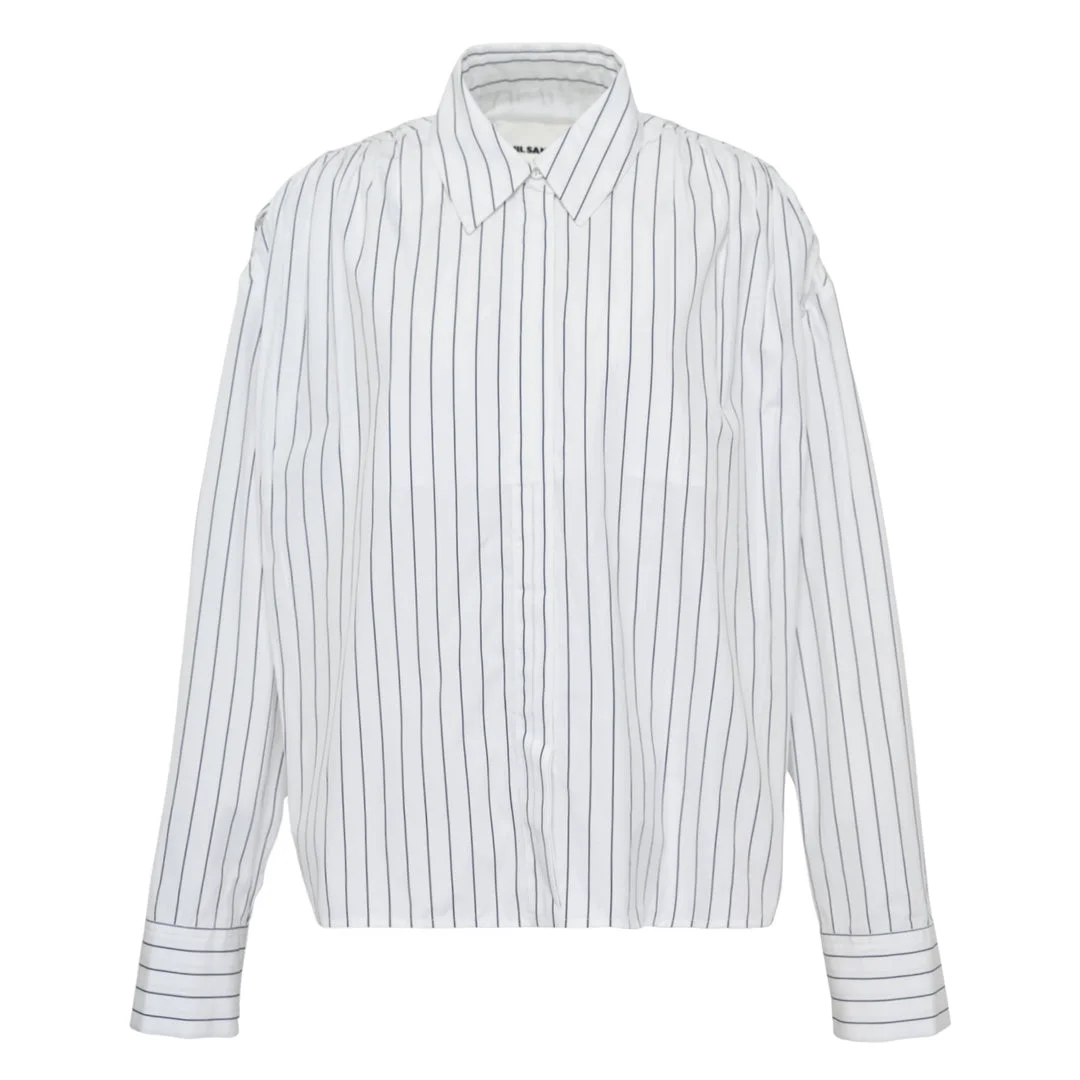 600077948STR034 / J02DL0281/J45329/154 - Classic point collar - Button-down front closure - Long sleeves with barrel cuffs - Vertical pinstripe pattern - Lightweight cotton construction - Regular fit The Jil Sander Pinstripe Light Cotton Shirt delivers minimalist sophistication with clean architectural lines and refined tailoring. Crafted from premium lightweight cotton in classic white with subtle navy pinstripes, featuring the brand's signature understated aesthetic. The crisp construction and timeless pattern create an essential foundation piece for modern wardrobes.