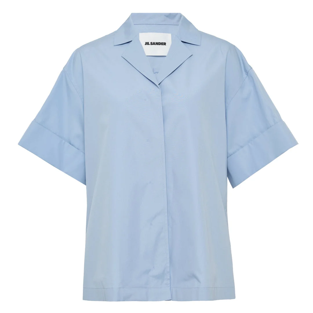 600077972BLU032 / J04DL0105/J45001/458 - Short sleeves with clean hemmed finish - Concealed button front closure - Classic point collar - Relaxed boxy fit - Premium cotton poplin construction - Minimalist design aesthetic The Jil Sander Women's Shirt delivers minimalist luxury with refined tailoring and contemporary sophistication. Crafted from premium cotton poplin in soft powder blue, featuring clean lines and the brand's signature understated aesthetic. The structured silhouette and precise construction create an elevated essential for the modern wardrobe.
