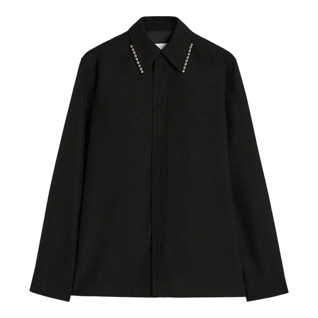 600073269BLK038 / J21DL0259/J40290/001 - Metal stud detailing on collar - Classic point collar - Long sleeves with button cuffs - Front button closure - Premium cotton construction - Regular fit - Minimalist design Jil Sander Black Studded Collar Shirt delivers minimalist luxury with contemporary edge through metallic stud detailing. Crafted from premium cotton in sophisticated black, featuring signature clean lines and structured tailoring that defines the brand's modern aesthetic. The contrast metal studs along the collar create a subtle punk-inspired accent that elevates the classic shirt silhouette.