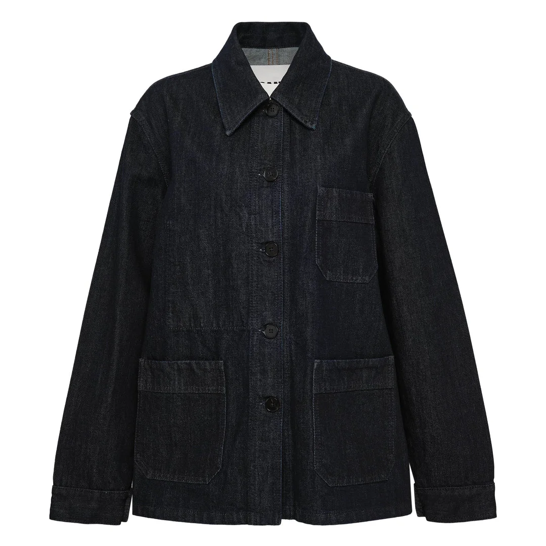 600077993DNM036 / J02SW0051/J45324/010 - Button-front closure with tonal buttons - Point collar with clean construction - Chest patch pocket - Two front patch pockets - Long sleeves with button cuffs - Light denim construction - Relaxed fit - Tonal contrast stitching The Jil Sander Sport Jacket Light Denim delivers minimalist sophistication with contemporary tailoring and versatile styling. Crafted from premium light denim in deep charcoal black, featuring clean lines and structured construction with the brand's signature understated aesthetic. The relaxed fit and refined details create an effortlessly elegant piece that bridges casual and formal wardrobes.