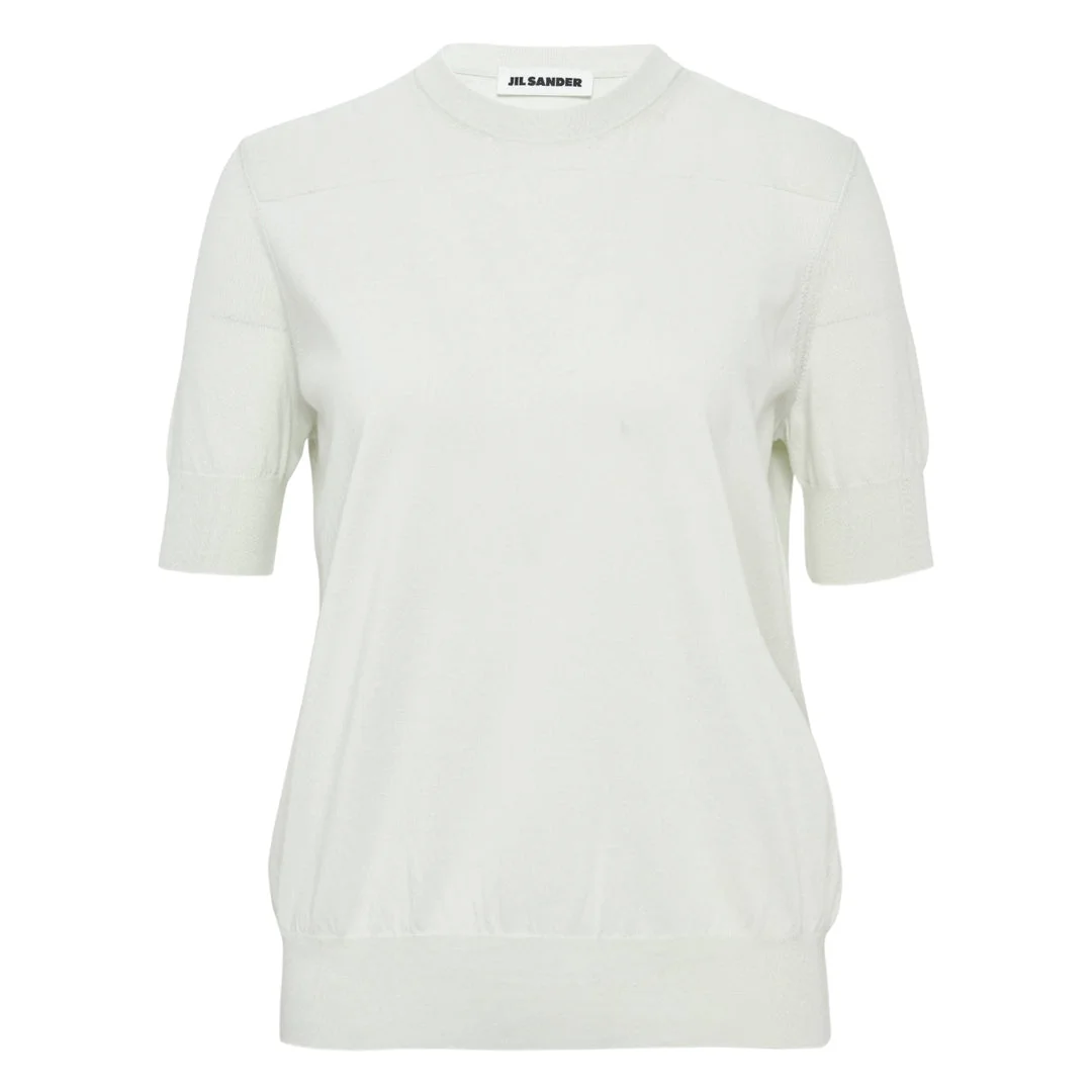 600077951LBL032 / J02GC0117/J15383/460 - Superfine cotton knit construction - Short sleeves - Crew neckline - Regular fit - Clean seam finishing - Machine washable Jil Sander Superfine Cotton Knit T-Shirt delivers minimalist luxury with exceptional comfort and refined construction. Crafted from premium superfine cotton knit in crisp white, featuring the brand's signature clean aesthetic and precise tailoring. The smooth hand-feel and structured silhouette create a versatile foundation piece for sophisticated modern wardrobes.