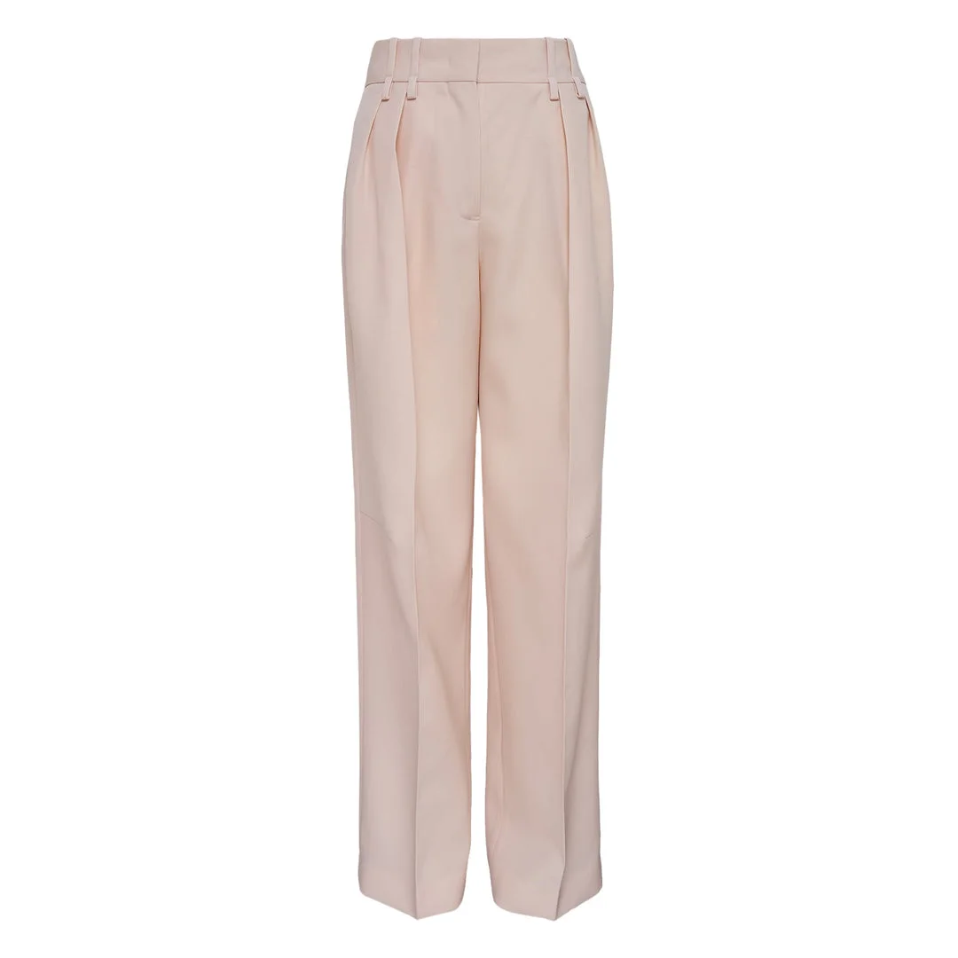 600077931BGE036 / J01KA0194/J40002/277 - High-waisted design with wide waistband - Pleated front construction - Side slash pockets - Wide-leg silhouette - Sharp wool fabric composition - Pressed center creases - Relaxed tailored fit Jil Sander Trouser Sharp Wool delivers minimalist luxury tailoring with contemporary sophistication and precise construction. Crafted from premium sharp wool in elegant blush pink, featuring the brand's signature clean architectural lines and impeccable fit. The structured silhouette and refined proportions create a versatile foundation piece for modern wardrobes.