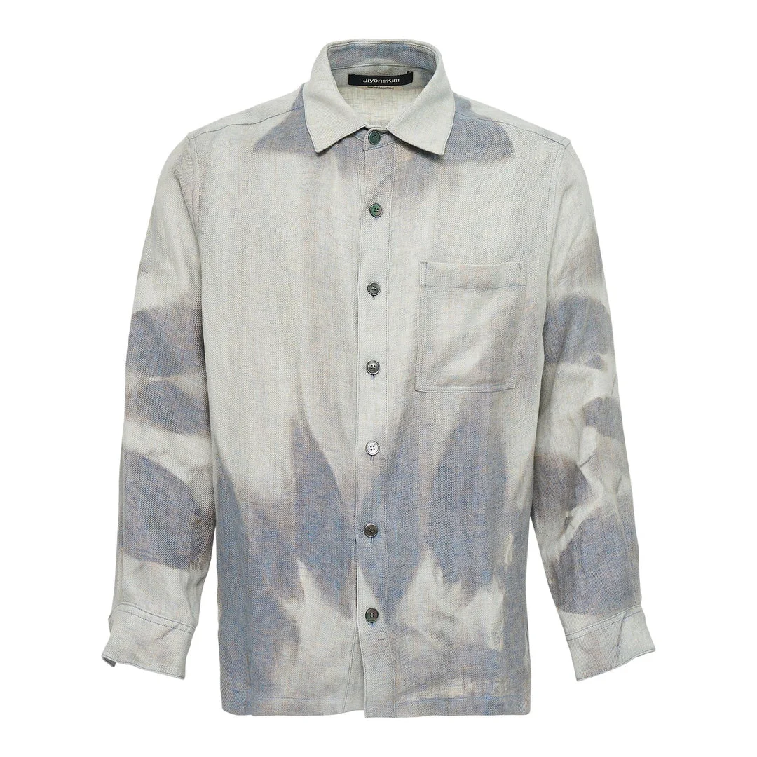 600069070LBL00S / JK25AWTO05/00/SUN-BLEACHED BLU - Sun-bleached tie-dye pattern in blue and cream - Classic point collar - Full button-down front closure - Single chest pocket - Long sleeves with button cuffs - Lightweight cotton construction - Relaxed fit - Curved hem JiyongKim Sun-Bleached Front Pocket Shirt delivers contemporary casual style with artistic sun-washed detailing. Crafted from lightweight cotton with an organic tie-dye effect in soft blue and cream tones, featuring relaxed tailoring and premium construction. The artist-inspired bleach treatment and minimalist silhouette create a unique statement piece for modern wardrobes.