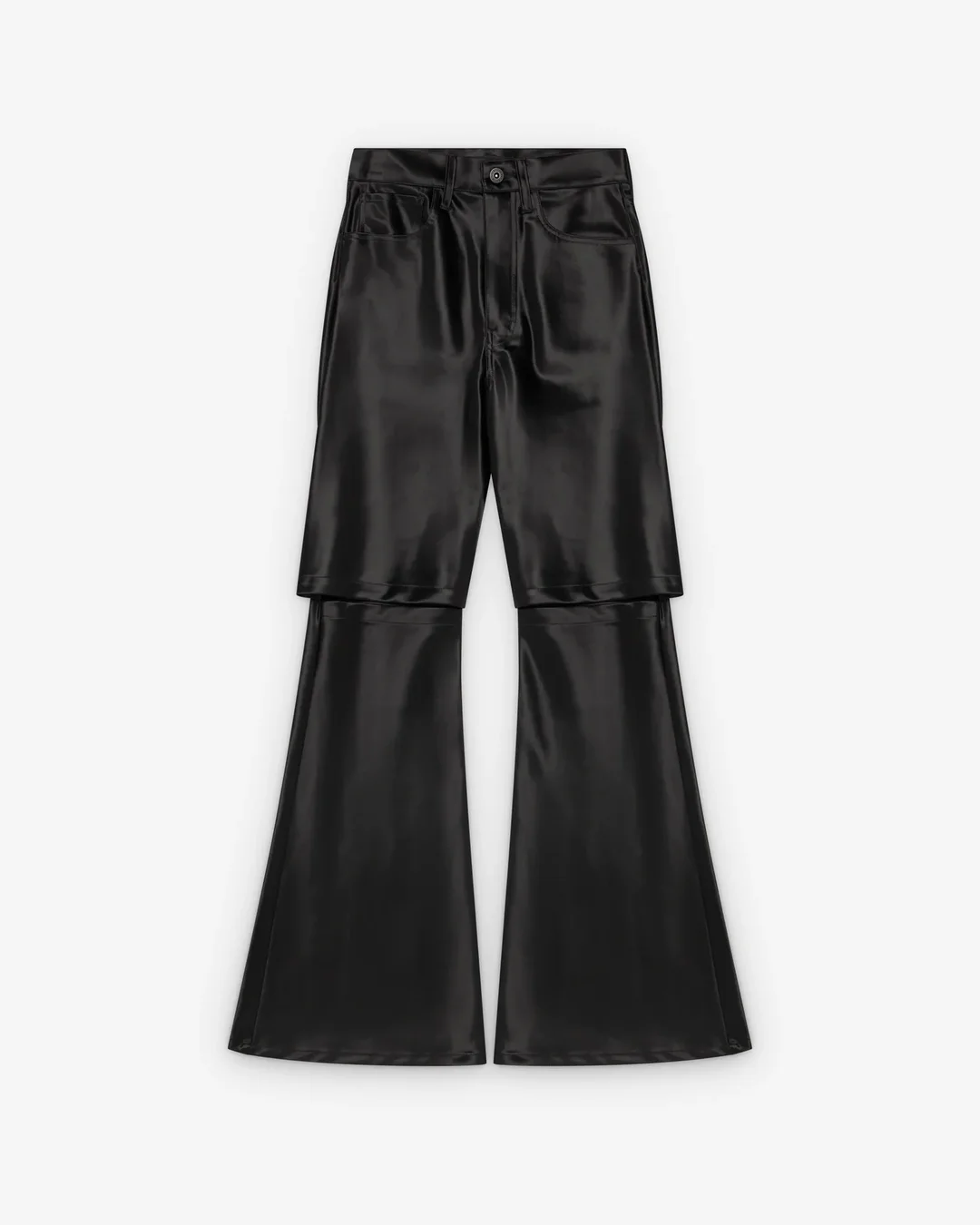 600080401BLK00M / JQ-P013/051/1/1A - High-waisted silhouette - Front button and zip closure - Classic five-pocket styling - Flared leg design - Durable nylon twill construction - Structured fit through hip and thigh Junya Watanabe Nylon Twill Pants deliver avant-garde design with innovative silhouette construction and technical functionality. Crafted from durable nylon twill in sleek black, featuring a unique flared leg design that transforms the traditional trouser aesthetic. The contemporary cut and signature Watanabe architectural approach create a bold statement piece for modern wardrobes.