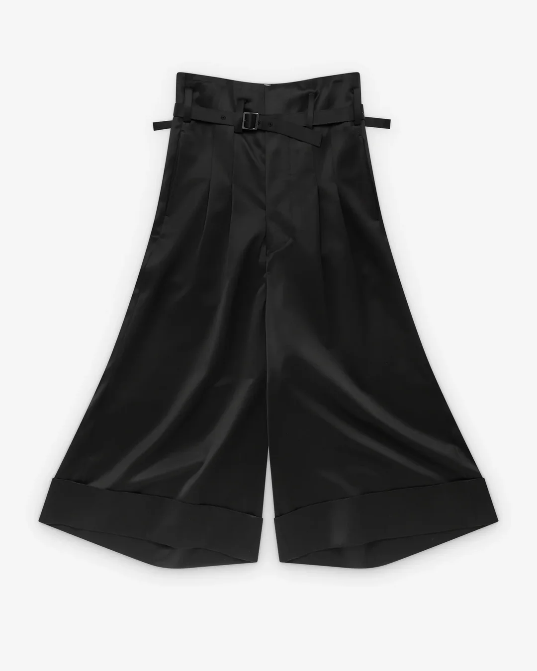 600080403BLK00L / JQ-P023/051/1/1A - High-waisted silhouette with wide legs - Adjustable grosgrain belt with buckle closure - Premium wool-viscose blend construction - Turned-up cuffed hems - Side seam pockets - Structured tailoring with clean lines - Cropped wide-leg cut Junya Watanabe Wool Viscose Grosgrain Culottes deliver avant-garde sophistication with architectural tailoring and contemporary silhouette. Crafted from premium wool-viscose blend with grosgrain details, featuring a high-waisted design with adjustable belt and wide-leg construction. The structured draping and signature Watanabe aesthetic create a bold statement piece for modern wardrobes.